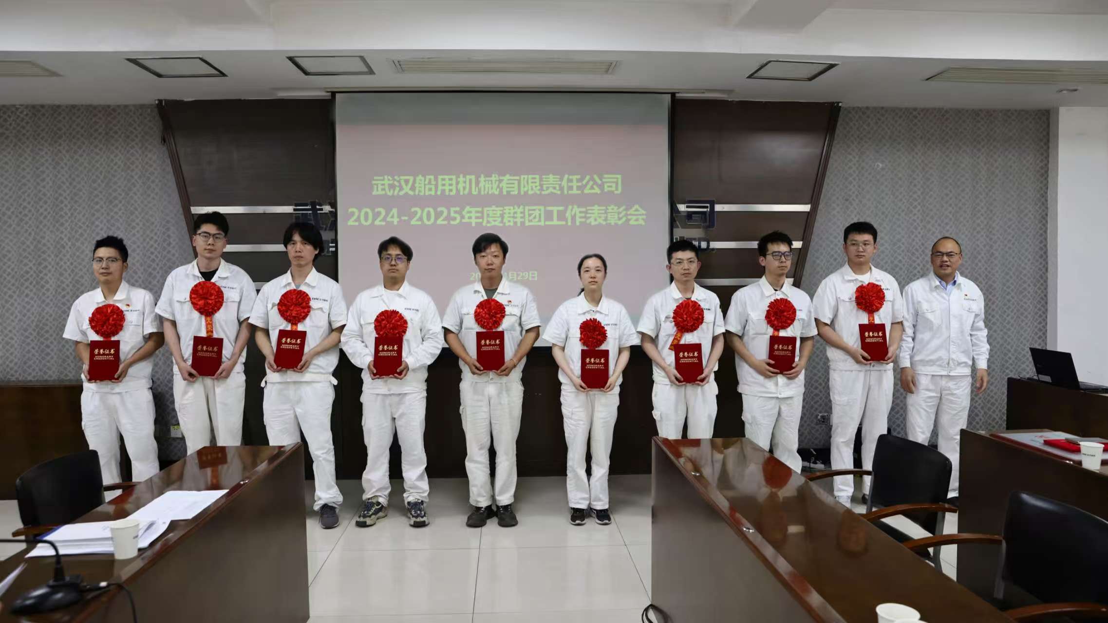 4月29日,中船集團武漢船機召開2024-2025年度群團工作表彰會,傳達學習習近平總書記在慶祝中華全國總工會成立100周年暨全國勞動模范和先進工作者表彰大會的講話精神,對公司工會、共青團先進集體和個人代表進行表彰。公司黨委委員、總會計師、工會主席陳世龍出席會議。